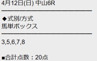 4月12日の阪神5R、うまジェネは三連複がたった1点で、払戻が7万4300円。さらに三連単は6点で、払戻が67万8800円。
