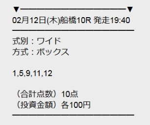 船橋10Rの無料予想でワイド3種全部的中