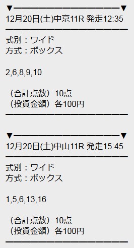12月20日(土)の無料予想で勝ち馬サプライズが