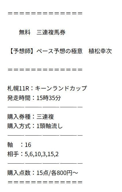 中山11Rの無料予想を三連複で提供してくれていたEFセレクト