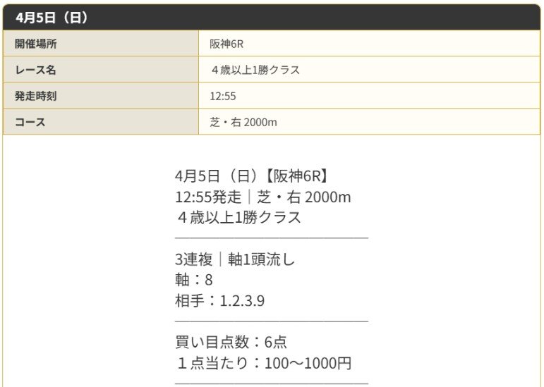 正直、5日(日)の阪神6Rの無料予想はそんなに派手なレースじゃないから、最初はそこまで期待してませんでした。