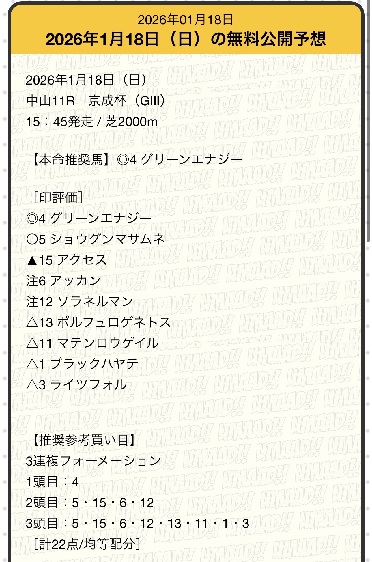 ちなみに今日の無料予想は中京7で三連複的中の4万1500円!