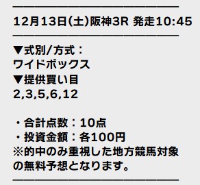 13日(土)の阪神3Rで3着10番人気を無料予想で見事に拾って