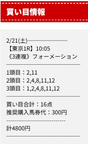 2月21日(土)の無料予想で東京1R