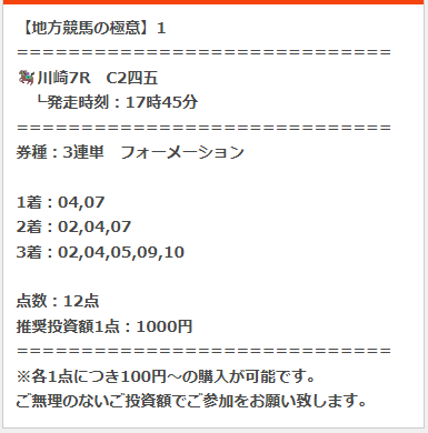 と決めていて実際に4連勝していたので金曜日地方競馬の極意を購入